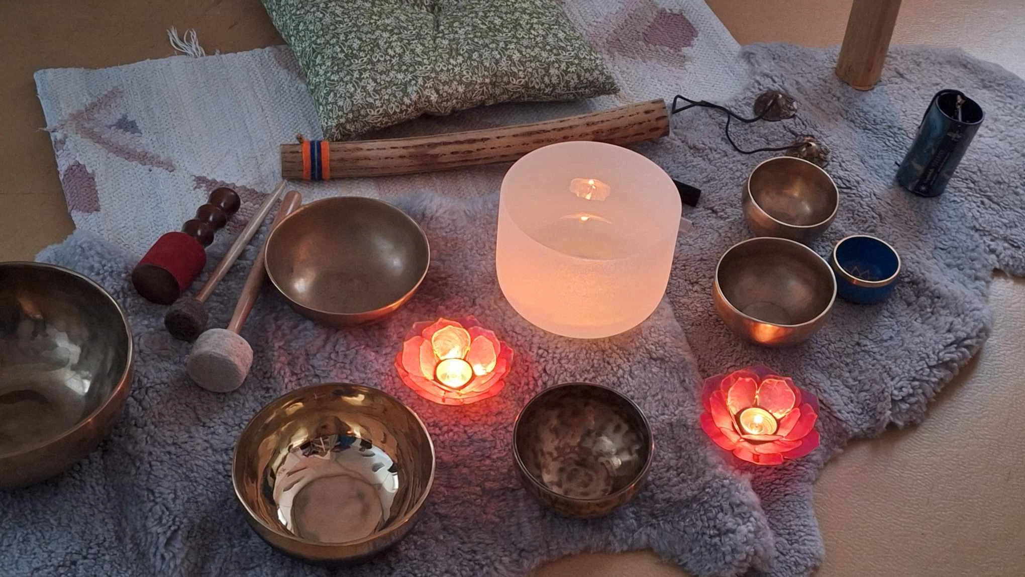 Äänirentoutusmatkassa eri soittimet kutovat meditatiivisen ja hoitavan kokonaisuuden, josta voit nauttia rauhassa lepäillen makuualustalla tai istuen, valitse paikanpäällä juuri sinulle sopivin tapa rentoutua.